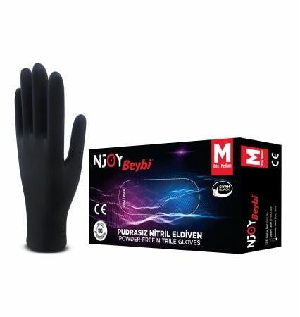 Beybi Muayene Eldiveni Nitril Njoy Pudrasız Siyah M